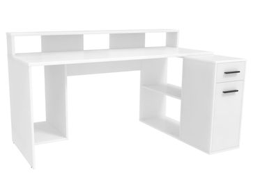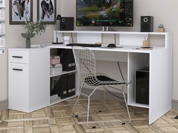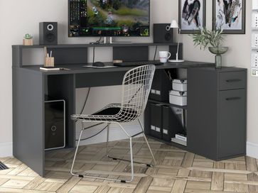 Компьютерный стол Скила позволит организовать комфортное место для учебы или удаленной работы. Конструкция собирается на любую сторону, поэтому модель одинаково удобна и для левшей, и для правшей. На широком столе с ящиками и открытыми нишами легко поместятся оргтехника, книги, папки и органайзеры с канцелярскими принадлежностями.<br>
