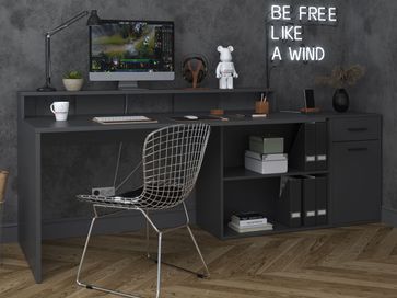 Компьютерный стол Скилар — удобное решение для студентов, школьников и тех, кто работает дома. Конструкцию можно расположить вдоль стены или под углом, подстроив под свои предпочтения и особенности планировки. Небольшая надстройка и несколько секций для хранения с легкостью вмещают все необходимые принадлежности.<br>
