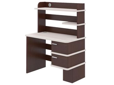 Компьютерный стол Рубенс в стильном дизайне, основанном на сочетании горизонтальных линий, поможет организовать компактное и функциональное рабочее место. Два вместительных выдвижных ящика позволят хранить необходимые бумаги и канцелярские принадлежности в быстром доступе. Надстройка оснащена полками для литературы и аксессуаров.<br>