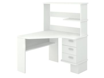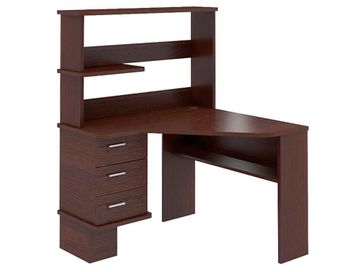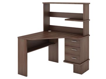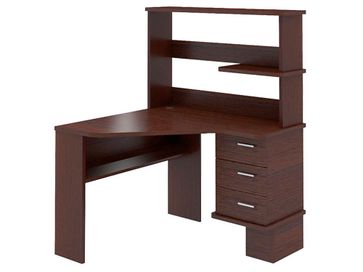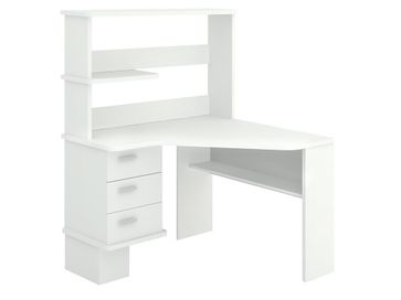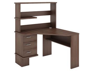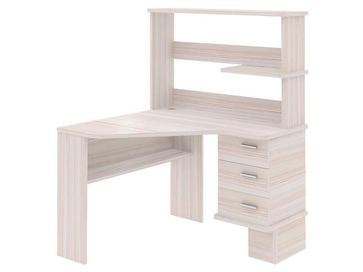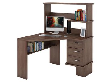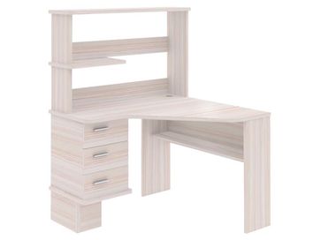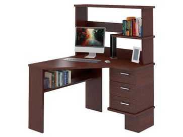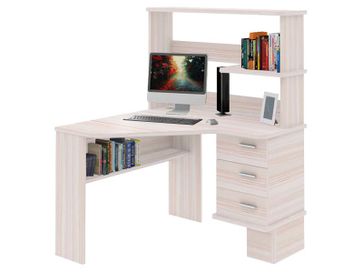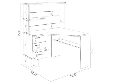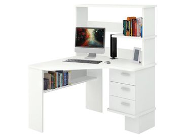 Удивительная конструкция углового компьютерного стола Лавренто организует удобное и функциональное рабочее место как для взрослого, так и для ребенка. Под столешницей расположились полка для книг и тумба с выдвижными ящиками, а сверху — надстройка с открытыми полками для пособий, дисков и принтера.<br>