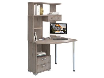 Угловой компьютерный стол Конрад дополнит интерьер современной комнаты. Модель имеет все необходимое для организации продуктивной работы или учебы. Вместительные ящики и полки легко разместят книги, рабочие материалы, а также памятные предметы и элементы декора.<br>