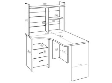 Компьютерный стол Кроган понравится тем, кто предпочитает просторное место для работы. Несколько открытых полок позволят удобно расположить книги, папки с бумагами, органайзеры и другие мелочи. Отсутствие острых краев и угловая конструкция делают столешницу очень комфортной и вместительной.<br>