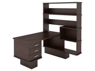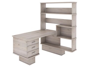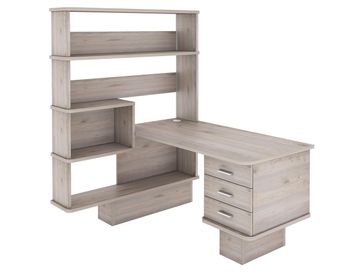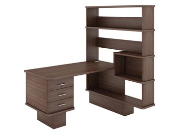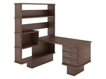 Компьютерный стол Орлам — это удачное сочетание запоминающегося дизайна и функциональности. На широкой столешнице достаточно места и для работы с бумагами, и для ноутбука. Три вместительных ящика дополняют систему хранения из нескольких открытых просторных полок, на которых легко поместятся книги, учебные или рабочие материалы.<br>