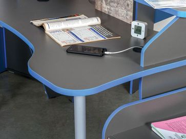 Детский компьютерный стол Индиго имеет практичный вырез в столешнице для комфортной работы за компьютером. Широкая поверхность модели дополнена надстройкой, на которой можно с удобством разместить монитор, колонки и другие вещи.<br>
