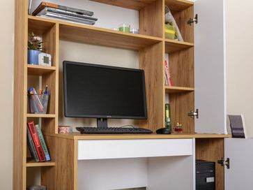 Характеристики: <br> Материал: ЛДСП 16 мм.<br> Тип направляющих: шариковые.<br> Дверца надстройки оснащена газлифтом, открывается за край.<br> Максимальная нагрузка на полку: 3 кг.<br> Размер ниши под системный блок (ВхШ): 600 х 250 мм.<br> Ориентация сборки: только так, как представлено на изображении.<br> None Страна производства: Россия