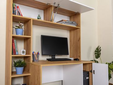 Характеристики: <br> Материал: ЛДСП 16 мм.<br> Дверцы надстройки оснащены газлифтами, открываются за край.<br> Максимальная нагрузка на полку: 3 кг.<br> Ориентация сборки: только так, как представлено на изображении.<br> None Страна производства: Россия