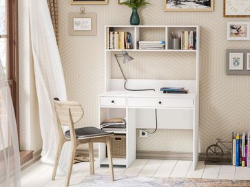 Компьютерный стол Комфорт 12.77 — отличное решение для домашнего офиса. Выдвижные ящики и открытые полки позволяют удобно расположить книги, тетради, канцелярские принадлежности и другие вещи. Специальное отверстие в столешнице обеспечивает правильное положение проводов от компьютера или другой техники.<br>
