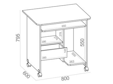 Преимущества: <br> компактный — благодаря скромным размерам не займет много места;<br> вместительный — оборудован надстройкой, несколькими секциями и выдвижным ящиком, что позволяет создать удобную систему хранения;<br> практичный — предусмотрены ниши для системного блока, монитора, клавиатуры и принтера;<br> мобильный — оснащен колесиками для легкого перемещения.<br>