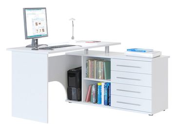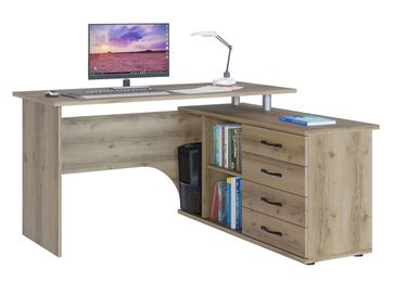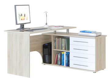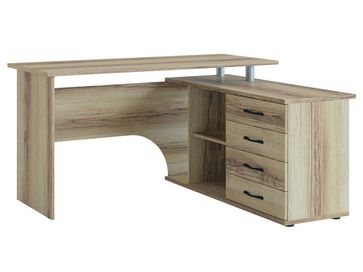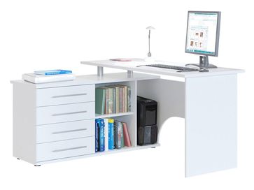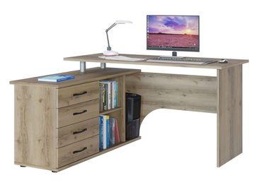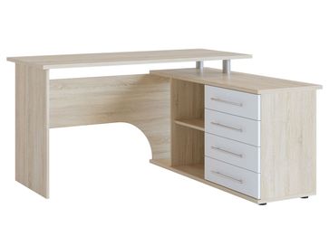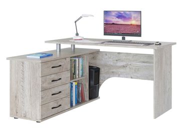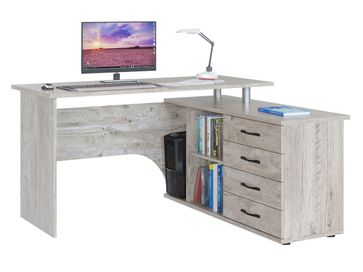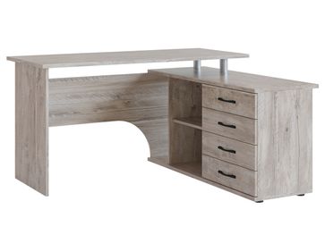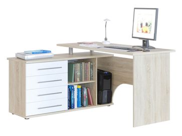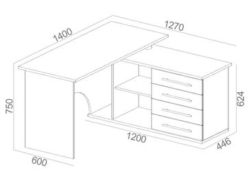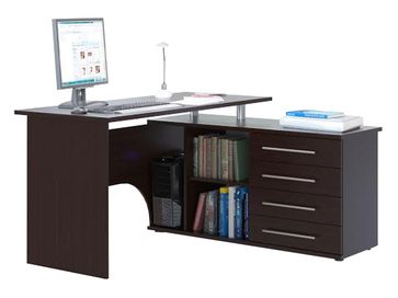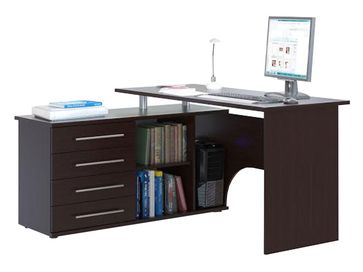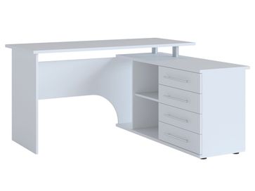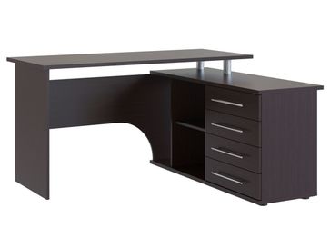 Преимущества: <br> функциональный — две рабочие поверхности, удобно держать все необходимое под рукой;<br> вместительный — оборудован тумбой с 4 ящиками, 2 просторными полками и нишей под системный блок;<br> угловая конструкция — экономит пространство, есть возможность выбора нужной ориентации стола (левый или правый угол);<br> подходит для зонирования — задняя стенка выполнена из ЛДСП в цвете корпуса.<br>