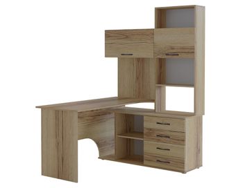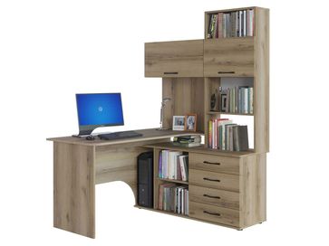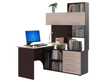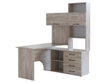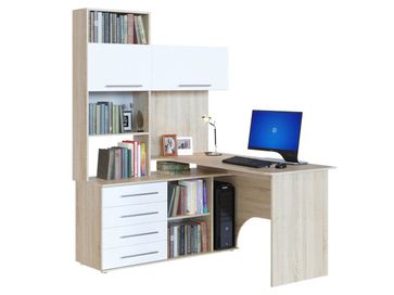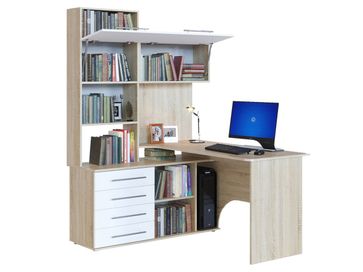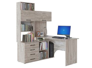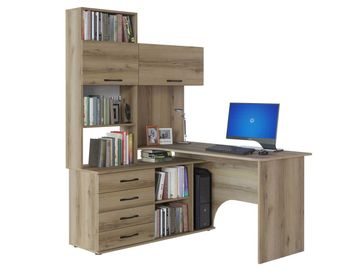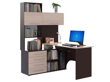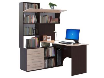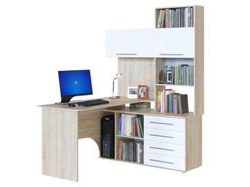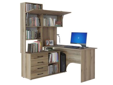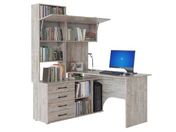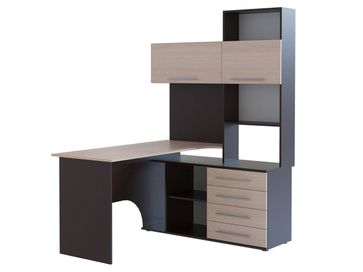 Многофункциональный компьютерный стол Бастон сочетает в себе широкую и просторную столешницу, тумбу с ящиками, полками и нишей под системный блок. Высокий стеллаж имеет открытые полки и два закрытых отделения, дверцы которых открываются вверх. Модель позволяет организовать максимально удобную и функциональную рабочую зону как в домашнем кабинете, так и в помещении офиса.<br>