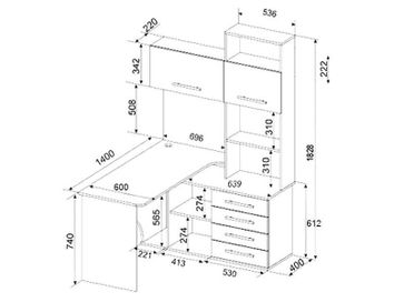 Характеристики: <br> Материал: ЛДСП 16 мм.<br> Материал ручек: металл.<br> Тип направляющих: роликовые.<br> Кабель-канал: 1 шт.<br> Ориентация сборки: левосторонняя и правосторонняя.<br>