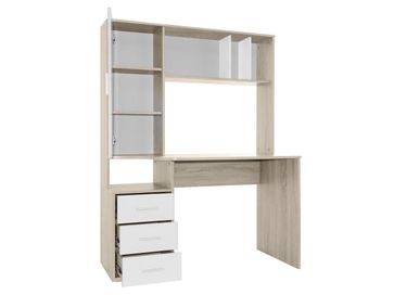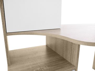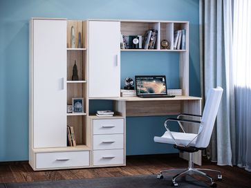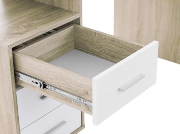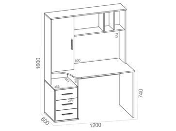 Преимущества: <br> множество мест для хранения — чтобы все было под рукой;<br> функциональный — оснащен тумбой с тремя ящиками и надстройкой с полками и стеллажом;<br> металлические ручки — стильные и долговечные;<br> шариковые направляющие полного выдвижения — бесшумное выдвижение ящиков, долговечность конструкции.<br>