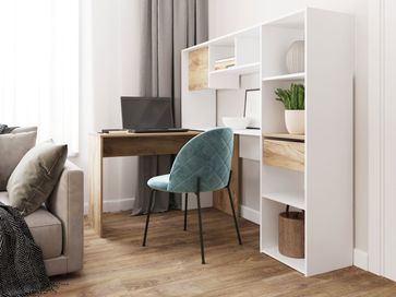 Комплект мебели Фолдер станет отличным решением для обустройства домашнего кабинета или офисной обстановки. Практичная комбинация двух моделей позволит организовать два полноценных рабочих места. Множество открытых ниш, закрытая распашная секция и выдвижной ящик разместят всё необходимое.<br>