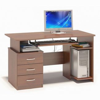 Удобный компьютерный стол.Столешница имеет анатомическую форму, она изготовлена из высококачественного ЛДСП отечественного производства толщиной 16 мм, отделана противоударной кромкой ПВХ.Стол оснащен тумбой с тремя ящиками и полкой под системный блок.Полочка под клавиатуру имеет размеры 650х356 мм.Внутренний размер ящиков составляет 476х310 мм, что позволит разместить в них документы формата А4, канцелярские принадлежности и необходимые мелочи.Стол универсальный и может быть собран как в правом, так и в левом исполнении (зависит от расположения системного блока).Задняя стенка тумбы сделана из ДВП серого цвета.Изделие поставляется в разобранном виде.Хорошо упаковано вгофротару вместе с необходимой фурнитурой для сборки и подробной инструкцией.Рекомендуем сохранить инструкцию по сборке (паспорт изделия) до истечения гарантийного срока. Работаем круглосуточно!Возврат 21 день. Страна производства: Россия Есть доставка.