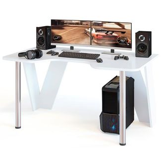 Стол компьютерный игровой с металлическими опорами КСТ-116. Цвет - белый. Размер (ШхГхВ 150х90х75 см. Стойки - металл хромированный. Стильный игровой стол - обязательный атрибут уголка отдыха современной семьи! Специальный вырез в центре столешницы обеспечивает комфортное положение тела и рук игрока. None Есть доставка.