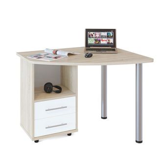 Стол компьютерный Сокол КСТ-102Л левый. Цвет - Дуб Сонома/Белый. Материалы - ДСП, ПВХ, ДВП, хромированный опоры. Тумба слева, выдвижные ящики слева. Габариты (ШхГхВ) 100х85х75 см. Это угловой стол и сочетает в себе два качества - функциональность и эстетику. Столешница установлена на металлические ножки и на боковины тумбы, которая состоит из двух ящиков и полки. None Есть доставка.