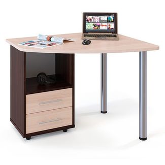 Стол компьютерный Сокол КСТ-102Л левый. Цвет - венге/белёный дуб. Материалы - ДСП, ПВХ, хромированный опоры. Тумба слева, выдвижные ящики слева. Габариты (ШхГхВ) 100х85х75 см. Это угловой стол и сочетает в себе два качества - функциональность и эстетику. Столешница установлена на металлические ножки и на боковины тумбы, которая состоит из двух ящиков и полки. None Есть доставка.