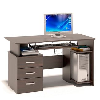 Стол КСТ-08 (КСТ-08-1). Цвет - Дуб Венге. Материал - высококачественная ламинированная ДСП. Размеры стола - 130х60х74 см. Универсальная сборка. Стол оснащен полноразмерной тумбой с выдвижными ящиками, нишей для системного блока и полками для сканера и канцелярских принадлежностей. None Есть доставка.