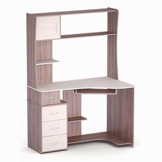 Бренд - ВМФ (Россия), Серия - Роберт, Ширина, мм - 1200, Высота, мм - 1650, Выступ, мм - 800, Компоненты, входящие в комплект - выдвижная панель под клавиатуру;надстройка:1 дверца, 2 полки;тумбочка:4 ящика;2 полки, Стиль - модерн, Размеры, мм - 1200x800x1650, Материал столешницы - ЛДСП, Материал фасада - ЛДСП, Материал корпуса - ЛДСП, Страна производителя - Россия, Цвет столешницы - дуб молочный, Цвет фасада - дуб молочный, ясень шимо темный, Цвет корпуса - дуб молочный, ясень шимо темный, Гарантия, месяцы - 24, Форма столешницы - сложная Работаем круглосуточно!Возврат 21 день. Страна производства: Россия Есть доставка.