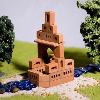Все детали конструктора "Родник" сделаны из экологически чистых материалов: кирпичики – из обожженной глины, безопасная строительная смесь «Брикмастер» – из кукурузного крахмала и речного песка.