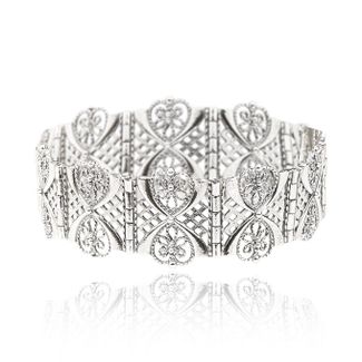 Материал: ювелирное покрытие чистым серебром толщиной 9 - 12 микрон. Длина браслета: 20 + 5 см. Ширина браслета: 2 см. Изделие гипоаллергенно. None Возможен самовывоз. Есть доставка.