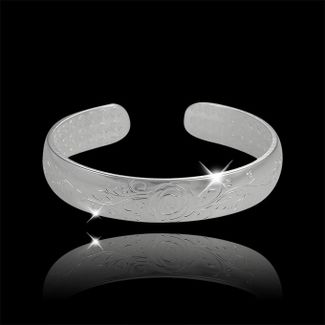Материал: ювелирное покрытие чистым серебром толщиной 9 - 12 микрон. Диаметр браслета: 6 см. Ширина браслета: 1,2 см. Изделие гипоаллергенно. None Возможен самовывоз. Есть доставка.