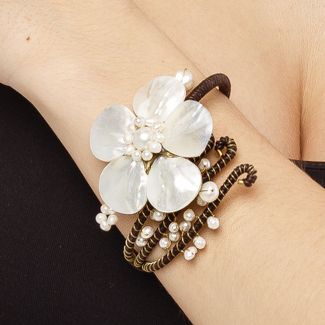 Камень: перламутр, жемчуг. Материал: перламутр, бисер, текстиль. Диаметр браслета: 6 см. Ширина браслета: 7,2 см. Изделие гипоаллергенно. None Возможен самовывоз. Есть доставка.