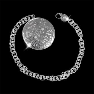 Материал: ювелирное покрытие чистым серебром толщиной 9 - 12 микрон. Длина браслета: 19 см. Размер декоративного элемента: 3,5 x 3,2 см. Изделие гипоаллергенно. None Возможен самовывоз. Есть доставка.
