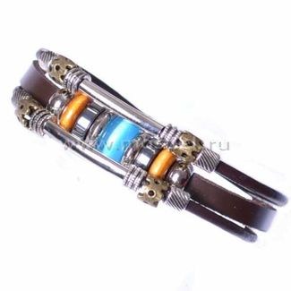 Браслет сделан из тонко нарезанных кожаных полосок и украшен металлическими элементами и голубой вставкой. Браслет в стиле шамбала станет отличным подарком парню, сыну или мужу, и несомненно придаст образу индивидуальность! Отличный выбор! None Возможен самовывоз. Есть доставка.
