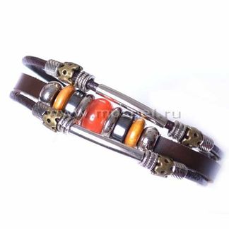 Браслет сделан из тонко нарезанных кожаных полосок и украшен металлическими элементами и оранжевой вставкой. Браслет в стиле шамбала станет отличным подарком парню, сыну или мужу, и несомненно придаст образу индивидуальность! Отличный выбор! None Возможен самовывоз.