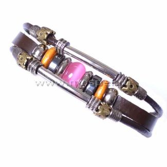 Браслет сделан из тонко нарезанных кожаных полосок и украшен металлическими элементами и розовой вставкой. Браслет в стиле шамбала станет отличным подарком парню, сыну или мужу, и несомненно придаст образу индивидуальность! Отличный выбор! None Возможен самовывоз. Есть доставка.