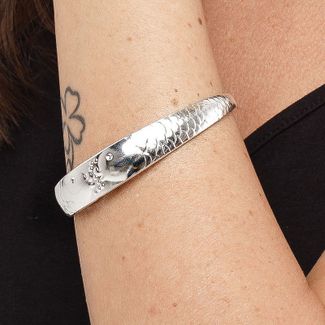 Материал: ювелирное покрытие чистым серебром толщиной 9 - 12 микрон. Диаметр браслета: 6 см. Ширина браслета: 1,3 см. Изделие гипоаллергенно. None Возможен самовывоз. Есть доставка.