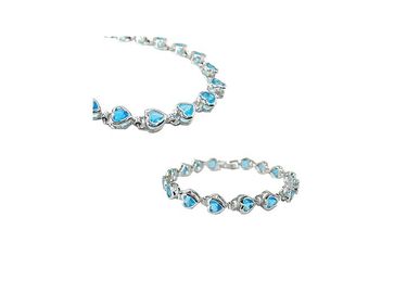 Браслет с аквамарином, синим или розовым сапфиром, танзанитом, изумрудом, аметистом, фианитом или рубином в форме сердца. Покрытие белым золотом. Размер: 7х165 мм. None Есть доставка. Доставка: 200.0RUB