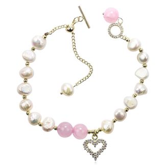 Материал: ювелирное покрытие чистым золотом толщиной 0.45 микрон, поделочный камень, искусственный жемчуг, барочный жемчуг. Длина браслета: 16 + 5 см. Ширина браслета: 0,8 см. Размер декоративного элемента: 1,2 x 1,2 см. Вставки: стразы. Изделие гипоаллергенно. None Возможен самовывоз. Есть доставка.