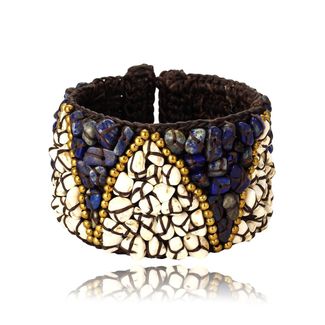 Материал: текстиль, поделочный камень, бисер. Диаметр браслета: 6 см. Ширина браслета: 4,5 см. Изделие гипоаллергенно. None Возможен самовывоз. Есть доставка.