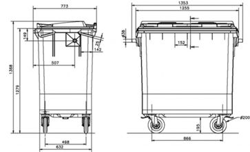 Контейнер для мусора на 770 литров изготовлен из ударопрочного и морозостокого пластика повышенной прочности. Главные преимущества контейнера не боится солнечных лучей, нагревания, морозов, ударов и коррозии наличие обрезиненных колес 200 мм. позволяет его легко и бесшумно передвигать. он не требует новой покраски, потому что цвет со временем не потускнеет и не выцветет. ащищен крышкой от попадания осадков, рассыпания мусора и животных. неприятный запах отходов не выходит за пределы плотно...