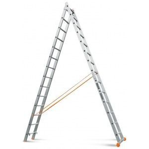 Лестница двухсекционная алюминиевая Эйфель Классик ДЛ 82 2х16, бытовая. Сечение профиля 82мм х23,5мм, толщина стенки - 1,3мм. Сечение ступени 32мм х 32мм, толщина стенки - 1,3мм. Применена технология изготовления ступени «РЕБРО ЭЙФЕЛЯ», противоскользящее рифление перенесено с плоскости ступени, где оно традиционно находилось, на ребро ступени, где раньше рифления не было. Прочная завальцовка ступеней. Металлические замки из специального сплава. Специальная конструкция верхних замков позво...