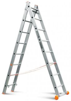 Лестница двухсекционная алюминиевая Эйфель Классик ДЛ 82 2х8, бытовая. Сечение профиля 82мм х23,5мм, толщина стенки - 1,3мм. Сечение ступени 32мм х 32мм, толщина стенки - 1,3мм. Применена технология изготовления ступени «РЕБРО ЭЙФЕЛЯ», противоскользящее рифление перенесено с плоскости ступени, где оно традиционно находилось, на ребро ступени, где раньше рифления не было. Прочная завальцовка ступеней. Металлические замки из специального сплава. Специальная конструкция верхних замков позвол...