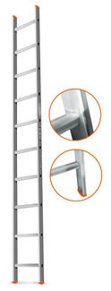 Лестница односекционная Эйфель Гранит 1х9 приставная. Длина, м: 2,58 Кол-во ступеней: 1х9 Вес, кг: 4,27 Материал: Алюминий Max рабочая нагрузка, кг: 150 Габариты, мм: 2580 x 340 x 65 Гарантийный срок 2 года Особенности: противоскользящее рифление находится на ребре ступени, а не на плоскости; направляющие выполнены из эргономичного восьмигранного алюминиевого профиля 62 х 20 мм. Такой профиль удобно держать при переносе лестницы и при подъеме-спуске. Толщина профиля направляющих и попереч...