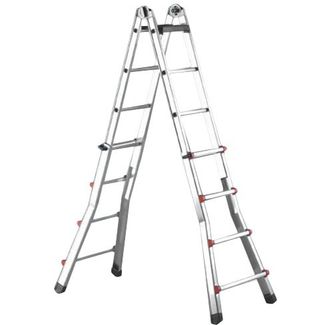Лестница телескопическая Svelt Scalissima 8+8, профессиональная. Используется как приставная лестница или как стремянка. Выполнена из высококачественного алюминия. Профессиональные профили (50x25 мм). Большие опорные наконечники обеспечивают устойчивое положение. Эргономичные шарниры из алюминия. Расширенная с двух сторон база. Широкая платформа из армированной пластмассы 30x26 см. Наличие защитного приспособления 60 см. Плоские ступени с антискользящим покрытием 80 мм. Рычаг безопасности, блоки...