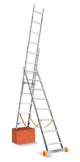 Лестница трехсекционная Эйфель Гранит 3х8, конструкция которой позволяет работать с одной выдвинутой секцией. Применена технология изготовления ступени «РЕБРО ЭЙФЕЛЯ»: противоскользящее рифление находится на ребре ступени, а не на плоскости. Направляющие выполнены из эргономичного восьмигранного профиля 62х20мм. Такой профиль удобно держать при переносе лестницы и при подъеме-спуске. Толщина профиля направляющих и поперечин 1,5 мм, ступени 1,4 мм. Благодаря граням на профиле поперечн...