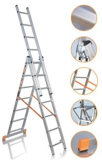 Трехсекционная алюминиевая лестница Эйфель Премьер ТЛ 3х8 представляет собой стремянку с одной выдвигающейся секцией. Кроме этого, три сегмента могут складываться последовательно, образуя длинную приставную лестницу, но можно оставить два или один сегмент. Таким образом, пользователь получает сразу 5 лестниц разной высоты и типов. Алюминиевые лестницы - легкие, прочные, хорошо проводят тепло и электричество; подойдут для обычных строительных и бытовых работ. К тому же, анодированный алюмин...