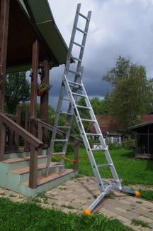 Лестница трехсекционная Эйфель Ювелир 3х6 с увеличенной шириной ступеней до 32мм (рифление по технологии "Ребро эйфеля"-противоскользящие насечки на ребре ступени)- легкая,прочная, хорошо проводит тепло и электричество. Подойдет для обычных строительных и бытовых работ специальные замки лестницы позволяют использовать изделие на лестничном марше. Регулируемая траверса для использования на неровностях. Эргономичные заглушки на траверсе с большей площадью опоры. Лестница представляет собой ...