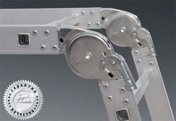 Лестница-трансформер Алюмет 2х4+2х5 многофункциональная, шарнирная. Может использоваться как стремянка, подмость и лестница. Ступени и направляющие из алюминия. Минимальный размер в сложенном виде. 6 стальных шарниров позволяют зафиксировать лестницу в выбраном положении. Ширина траверсы 810 мм. Максимальная нагрузка на ступень 150 кг, в виде подмости -100 кг! Длина в сложенном виде, м: 1,51 Длина лестницы, м: 5,13 Высота в виде мостика, м: 1,44 Высота в виде стремянки, м: 2,30 Кол-во ступеней: ...