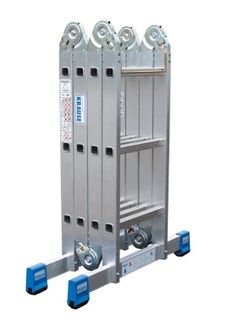 Шарнирная универсальная лестница-трансформер Stabilo 4 секции по 4 ступени Четырехсекционная универсальная алюминиевая шарнирная лестница: применяется как двусторонняя стремянка, как приставная лестница и как рабочая платформа). Оба шарнира одновременно приводятся в действие одной рукой при помощи дужки, что позволяет быстро и легко монтировать нужную конфигурацию лестницы. Быстро и легко складывается, свободно умещается в багажнике автомобиля. Боковины из алюминиевого прессованного профиля с до...