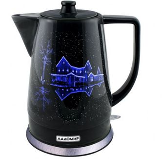 Технические характеристики:Производитель: ЛадомирМодель: 214Тип: чайник электрическийМощность: 1500 ВтОбщий объем: 1,5 лМатериал корпуса: экологически чистая керамика, не влияющая на состав вскипяченной воды . Отличные теплоизоляционные свойства.Отделяемая подставка с возможностью поворота чайника на 360°Блокировка включения без водыИндикация включенияЦвет: черный с рисунком оплата нал/безнал, карта Возможен самовывоз. Есть доставка.