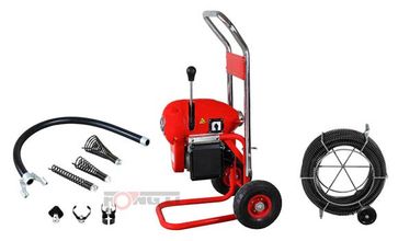 Профессиональная машина для прочистки труб и каналов, рассчитана на длительную промышленную эксплуатацию, для труб и каналов диаметром от 50 до 250 мм. Идеально подходит для эксплуатации в частном хозяйстве, в сфере техобслуживания, в гостиницах, больницах, интернатах, при техническом обслуживании подземных трубопроводов, каналов, водосточных труб. Комплект поставки: