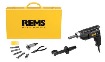 Системное преимуществоТолько один вид отбортовочного инструмента для REMS Хуррикан Х, REMS Хуррикан и REMS Твист/Хуррикан. Простое, малозатратное складское хранение.Издержки Никаких издержек при изготовлении Т-образных отводов, монтаже и поставках. Экономия рабочего времени. Надёжное крепление труб.ИсполнениеКомпактный, удобный, легкий. Многофункциональный, приспособлен для работы одной рукой, отбортовка также и на уже смонтированном трубопро- воде. Сверлильная головка для точного сверления, подходит к любой стандартной дрели, ограничитель глубины сверления соответствует размеру Т-образного соединения. Удобный фиксатор для крепления держателя инструмента на трубе. Клещи для фиксации державки.ПриводКомпактный, прочный, подходит для работы на стройплощадках. Удобный, легкий, весит всего 2 кг. Многофункциональный, приспособлен для работы одной рукой, отбортовка также и на уже смонтированном трубопроводе. Нетребующий технического обслуживания редуктор. Надежный универсаль- ный двигатель, 600 Вт. Экстримально большой крутящий момент на правом / левом ходу при маленьких оборотах. Привод с шестигранным адаптером.Отбортовочный инструмент Специальная конструкцияразвальцовочного инструмента гарантирует равномерную, не портящую материала работу без грата и зазубрин. Поэтому не нужно никакой последующей обработки . REMS Твист/Хуррикан Комплект REMS Твист и REMS Хуррикан экономят место и вес для изготовления Т-образных отводов и для расширения жестких и мягких медных труб для бесфитингового монтажа. Всего один привод для расширения и отбортовки. Выгода за счёт цены! Страница 183. Комплект поставки REMS Хуррикан Сет. Электрический расширитель и отбортовщик для твёрдых и мягких медных труб D 10 – 22 мм, D ? – ?", s ≤ 1,5 мм. Привод с шестигранным адаптером, не требующий технического обслуживания редуктор, универсальный двигатель 230 В, 50–60 Гц, 600 Вт, большой крутящий момент на правом/левом ходу при маленьких оборотах. Фиксатор, державка, сверлильная головка