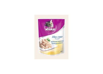 - Вискас 85 г конс. дкошек Мяу-мясо курица в соусе в каталоге Корма для кошек в России;