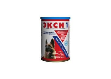 - Экси-1 400 гр консервы для собак мясной деликатес по выгодной цене 44 р. руб.;